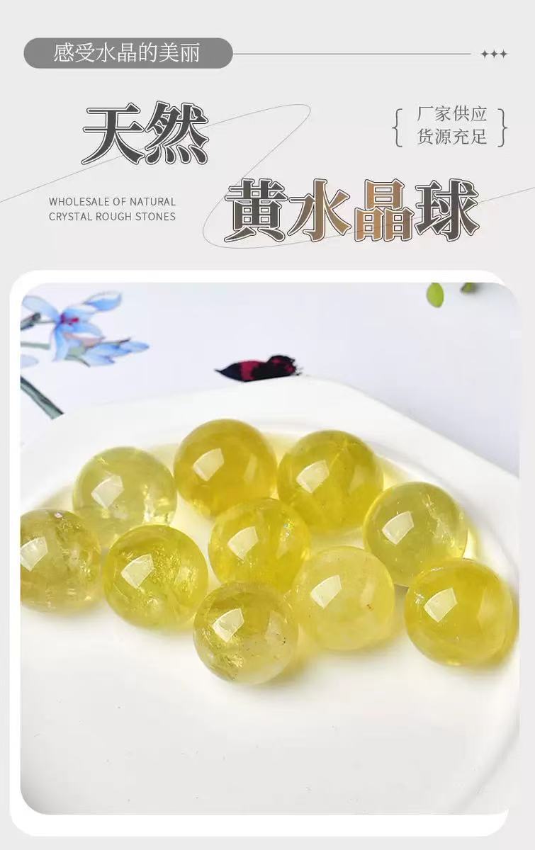 天然黃水晶球擺件水晶原石能量球家居辦公開業裝飾擺件批發送底座
